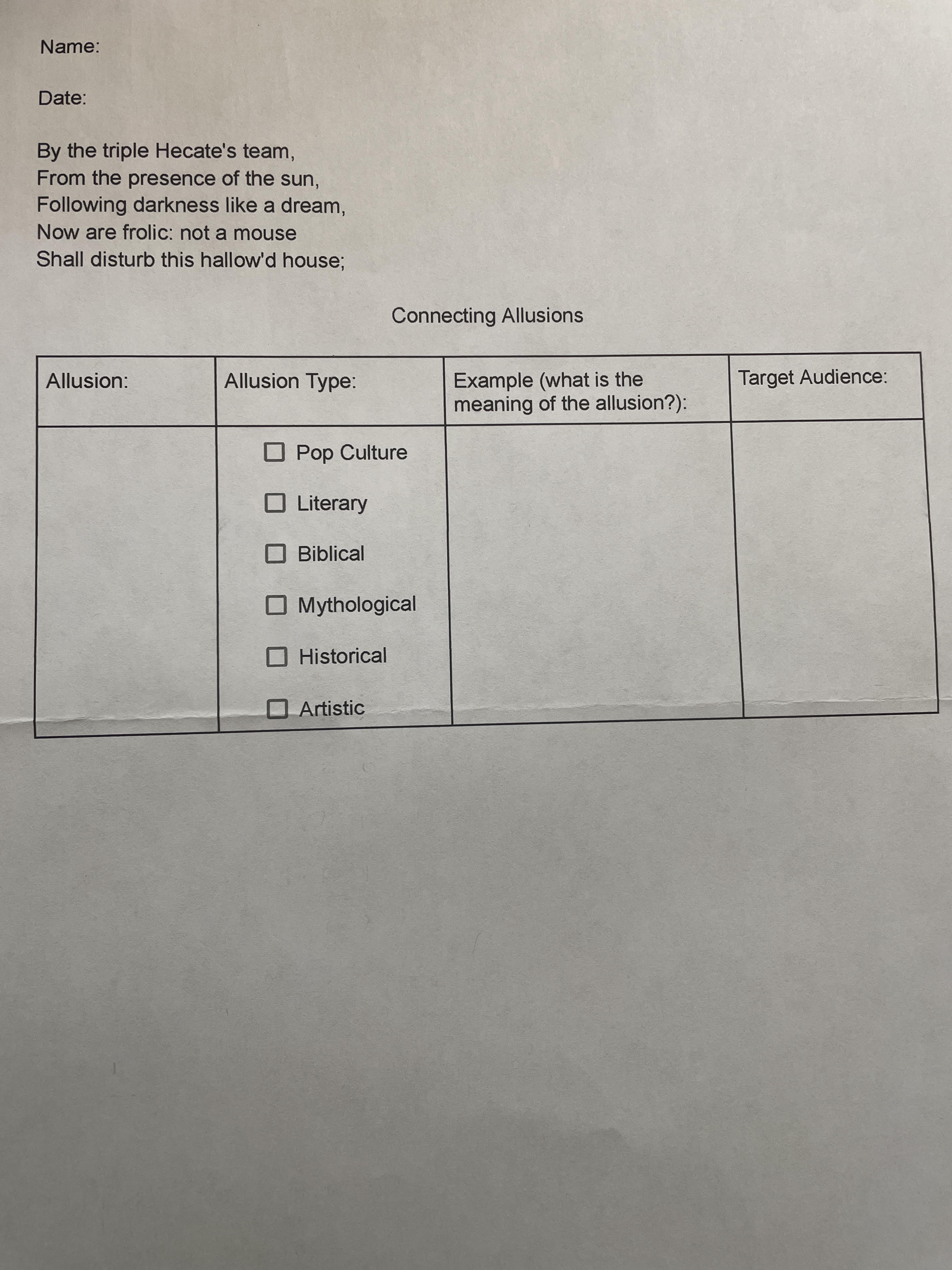 How to integrate this lesson into your classroom: Two class periods. One to get students used to the network as they identify and enter allusions and their sources. The second class period provides time to revise/add additional allusions and discuss the patterns students see in the allusions they entered.